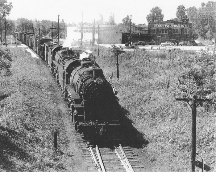 Gene Smith identifies this as a northbound B&O freight crossing Linden Avenue, adjacent to the current Eastown Shopping Center and the US 35 expressway.