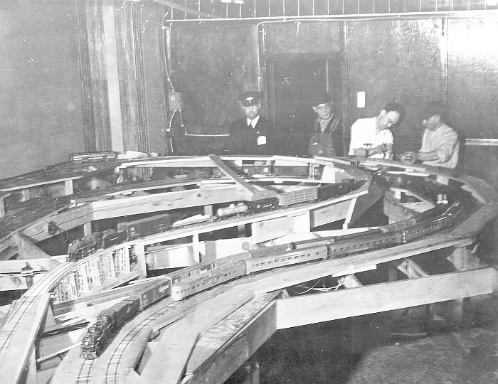 Working on the layout at the Dayton Union Terminal (?). Date and participants unknown.