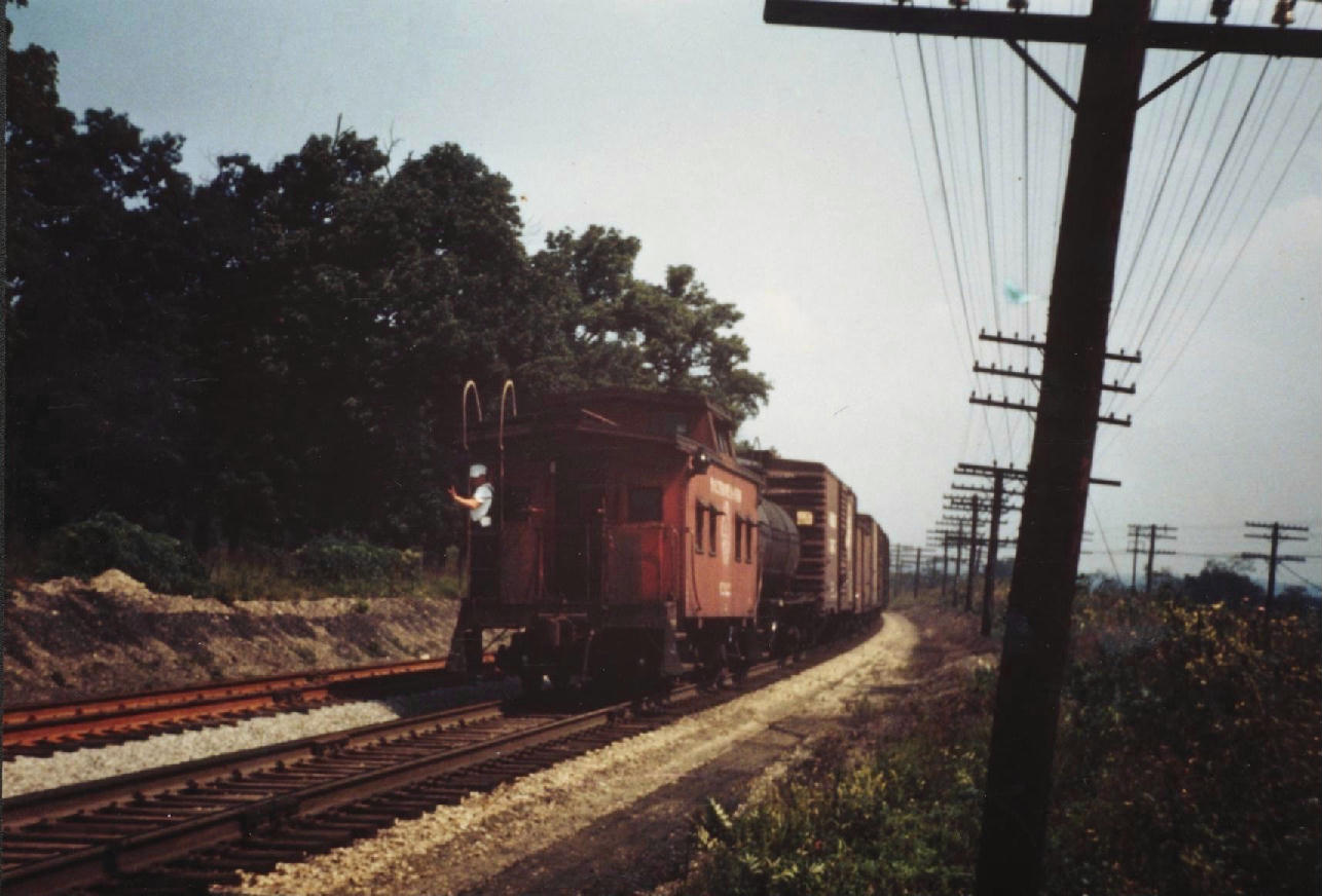 Tail end of northbound B & O freight train after crossing Union Road, Carlisle, OH - circa 1949.