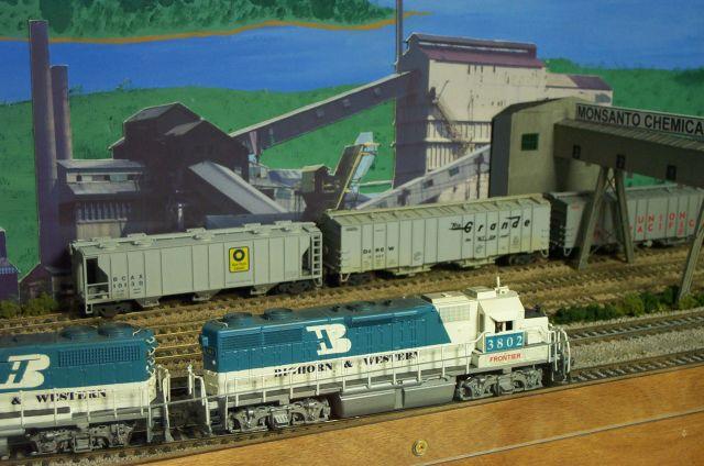 Bighorn & Western Freight headed east past Monsanto plant at Soda Springs Dick Sine Photo |