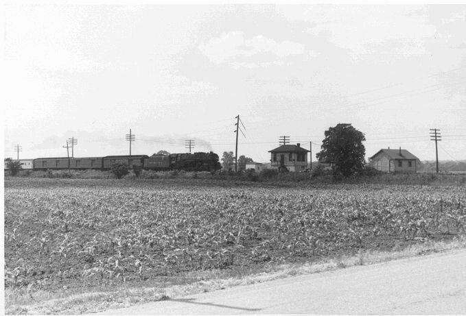 Leslie A. Fisher NYC Train #312 behind Hudson #5312 headed north at Glen Echo at 11:30 am on 6/17/1955 |